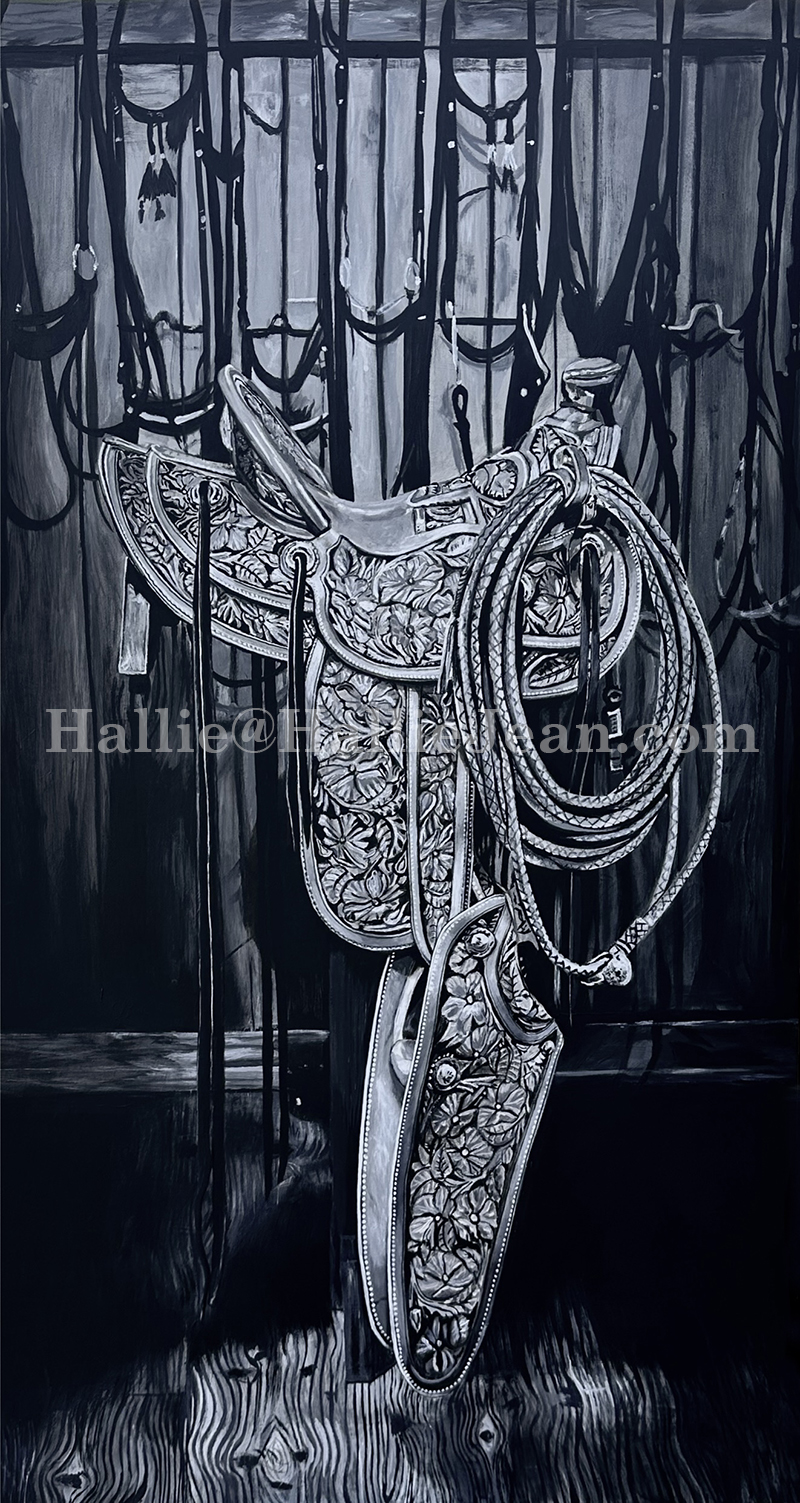 Celebrating the California Rose: A Collaborative MasterpieceI’m thrilled to share a special project that’s close to my heart—a painting I created of the stunning California Rose saddle, a remarkable collaboration by the Traditional Cowboy Arts Association (TCAA). This piece was inspired by a photo shared by my friend, who graciously gave me permission to paint it. When I reached out, he enthusiastically said, “Yes,” and even shared that he’d produced a documentary about this extraordinary saddle. For more details and to view his documentary, visit