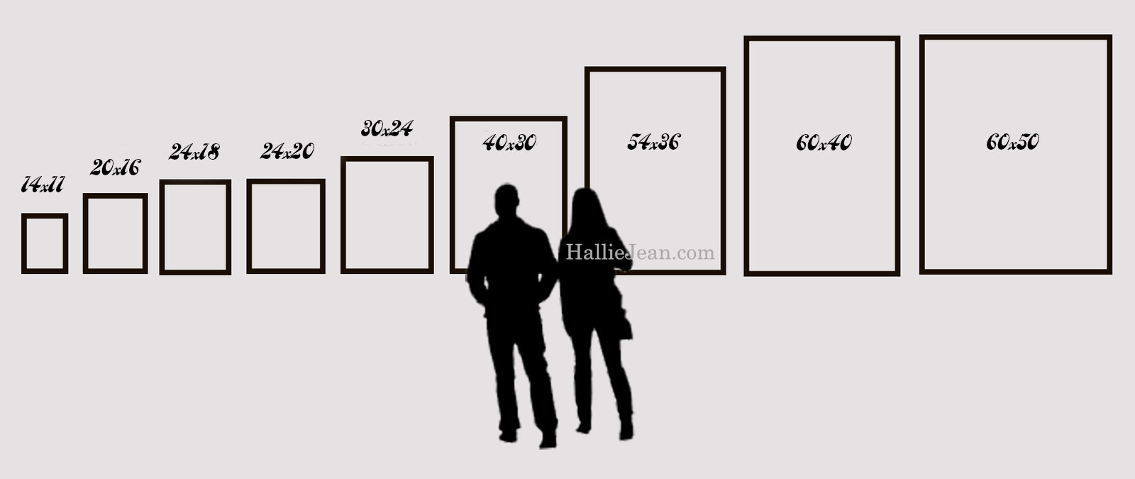 The graphic below is an aid to visualize the size of artwork which might best fit your space.